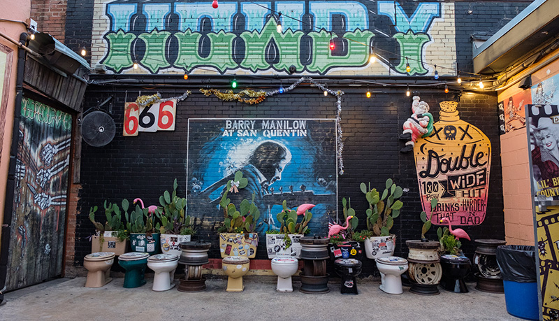 We really can’t resist a bar with a row of toilets in the courtyard. Double Wide gives more than a nod to trailer park americana playing “rock & roll and country and everything in between.” If we ever wanted to smash a beer can on our foreheads we’d be sure to do it here. It might be one of the few places in Deep Ellum that doesn’t make you feel like you need to put on your good boots. Come as you are and enjoy the live music and try one of their unforgettable drinks like the Yahoo Yeehaw, a drink that is described on their site as a “white Russian meets white trash.” If you like this vibe, check out their sister bar, Single Wide. And yes, it’s half the size.