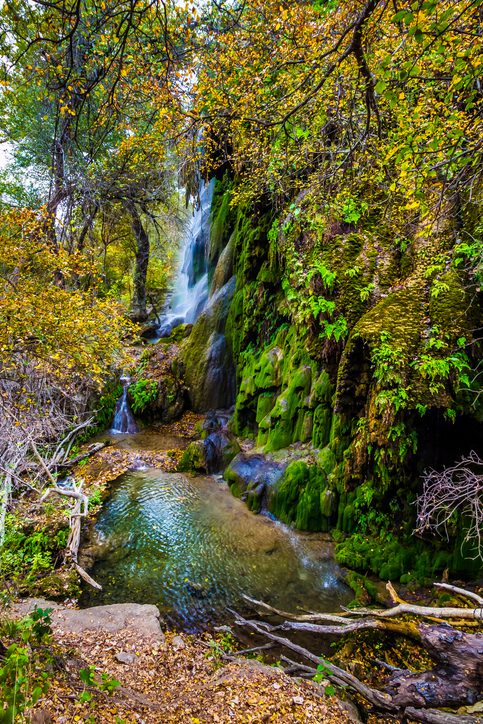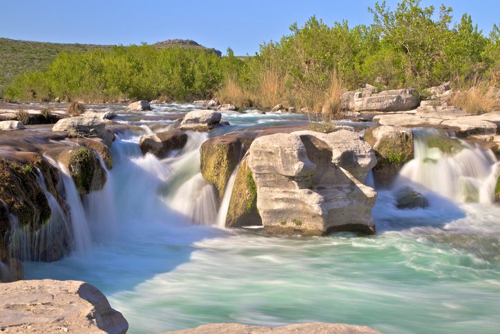 Dolan Falls is not as well-known as some of the other falls. It stretches 15 feet in the Devils River State Natural Area, a nature preserve in Del Rio. Here you’ll find crystal clear water —you read that right —some of the cleanest water in the state. Visitors can swim in the surrounding waters, and kayaking seems to be a popular option amongst guests, as well. You probably won’t find many guests though— this place gives peak solitude.