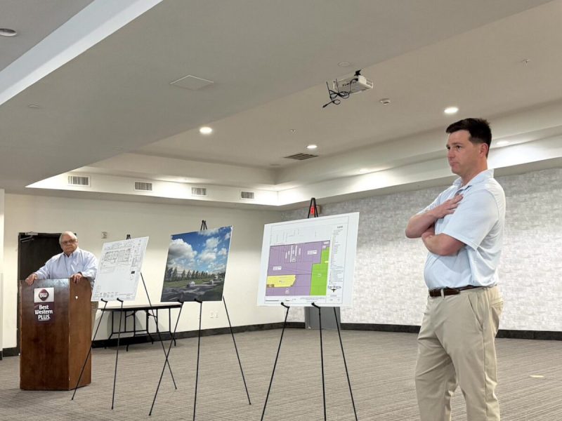Rhett Bennett, CEO of Black Mountain Energy (right), hosted a private meeting to discuss plans for a $10B data center on Wednesday. (Photo by Katie Serrano)